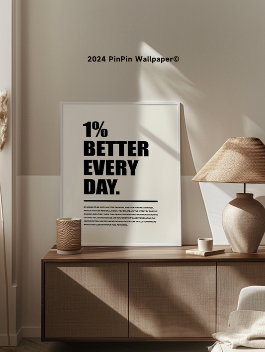 Póster motivacional 1% Better Everyday para una decoración minimalista del hogar o la oficina